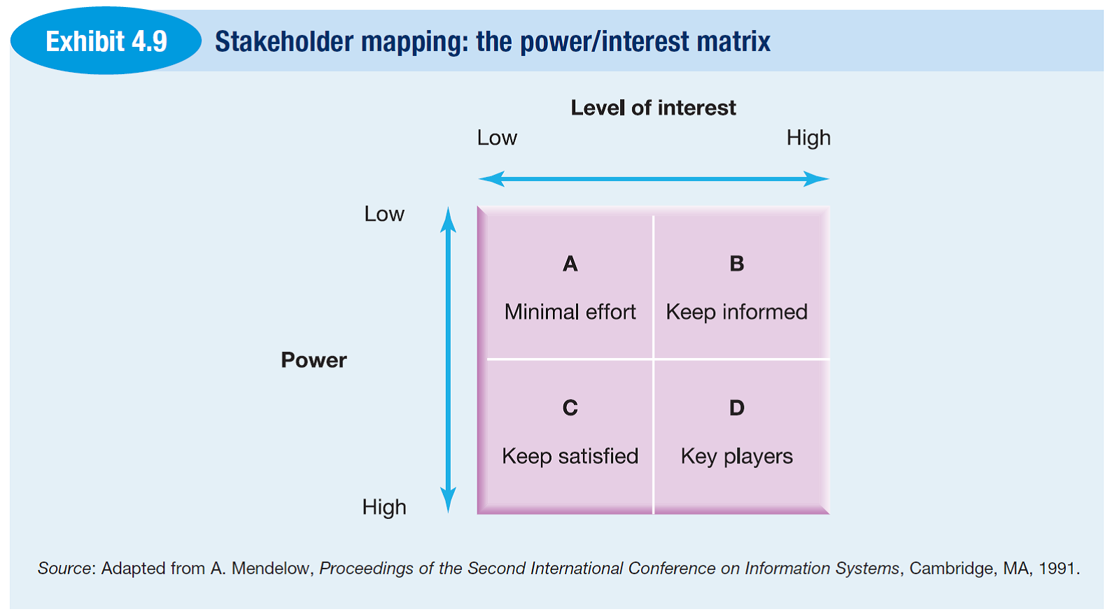 Walaupun beberapa tulisan merujuk pada Mendelow (1983) sebagai sumber Power-Interest Grid, alias artikel tersebut, pada kenyataannya tak ada grid yang sangat popular itu di artikel tersebut. Lebih tepat lagi: tak ada bagan apapun di artikel itu. Selain tulisan dalam bebtuk paragraf, yang ada hanya 3 daftar.