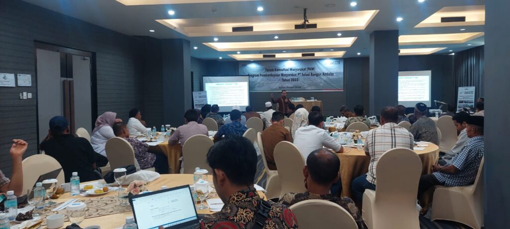 PJ Bupati Aceh Besar yang diwakili Asisten II Perekonomian dan Pembangunan SETDAKAB M. Ali SSos. MSi membuka Forum Konsultasi Masyarakat (FKM) program pemberdayaan masyarakat PT. Solusi Bangun Andalas (SBA) tahun 2023 di Room Meeting Kriyad Muara Hotel, Banda Aceh, selasa 19/09/2023.