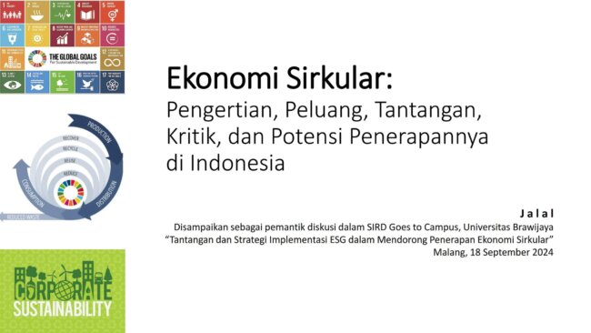 Presentasi ini disampaikan dalam sebagai pemantik diskusi dalam acara SIRD Goes to Campus, Universitas Brawijaya “Tantangan dan Strategi Implementasi ESG dalam Mendorong Penerapan Ekonomi Sirkular” di Malang, pada tangga 18…