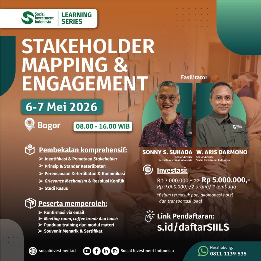 Pelatihan Stakeholder Mapping & Engagement dirancang untuk memberikan pemahaman komprehensif mengenai teknik identifikasi, pemetaan, serta strategi keterlibatan stakeholder. Dengan mengacu pada standar internasional seperti AA1000 Stakeholder Engagement Standard, peserta akan mempelajari bagaimana membangun dialog yang inklusif, transparan, dan responsif, sekaligus mengelola risiko sosial melalui mekanisme pengaduan (grievance mechanism).