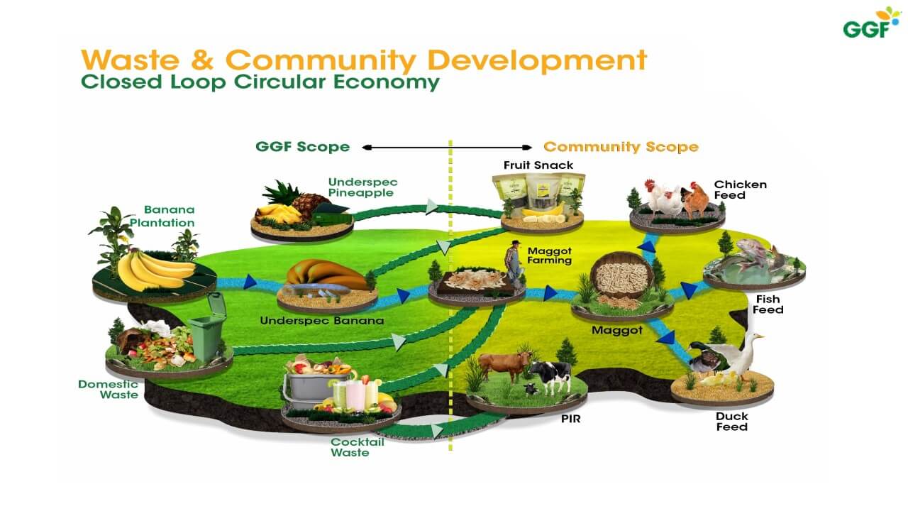 GGF bermitra dengan peternakan sapi untuk kebutuhan pakan ternak serta pengolahan kompos. Proses bisnis GGF yang melibatkan community juga dilakukan untuk proses pengolahan daun nanas sebagai fiber untuk kebutuhan industri lain. Sehingga banyak menyerap tenaga kerja dan menumbuhkan nilai ekonomi di lingkungan sekitar Perusahaan.