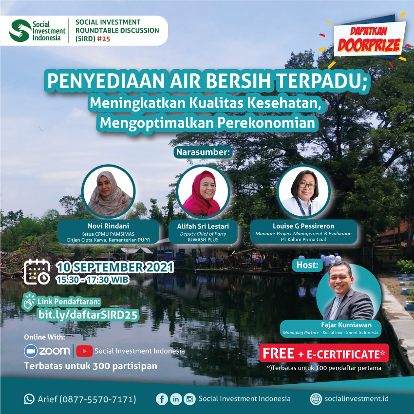 Materi Presentasi SIRD #25: Penyediaan Air Bersih Terpadu. Meningkatkan Kualitas Kesehatan, Mengoptimalkan Perekonomian 13 September 2021