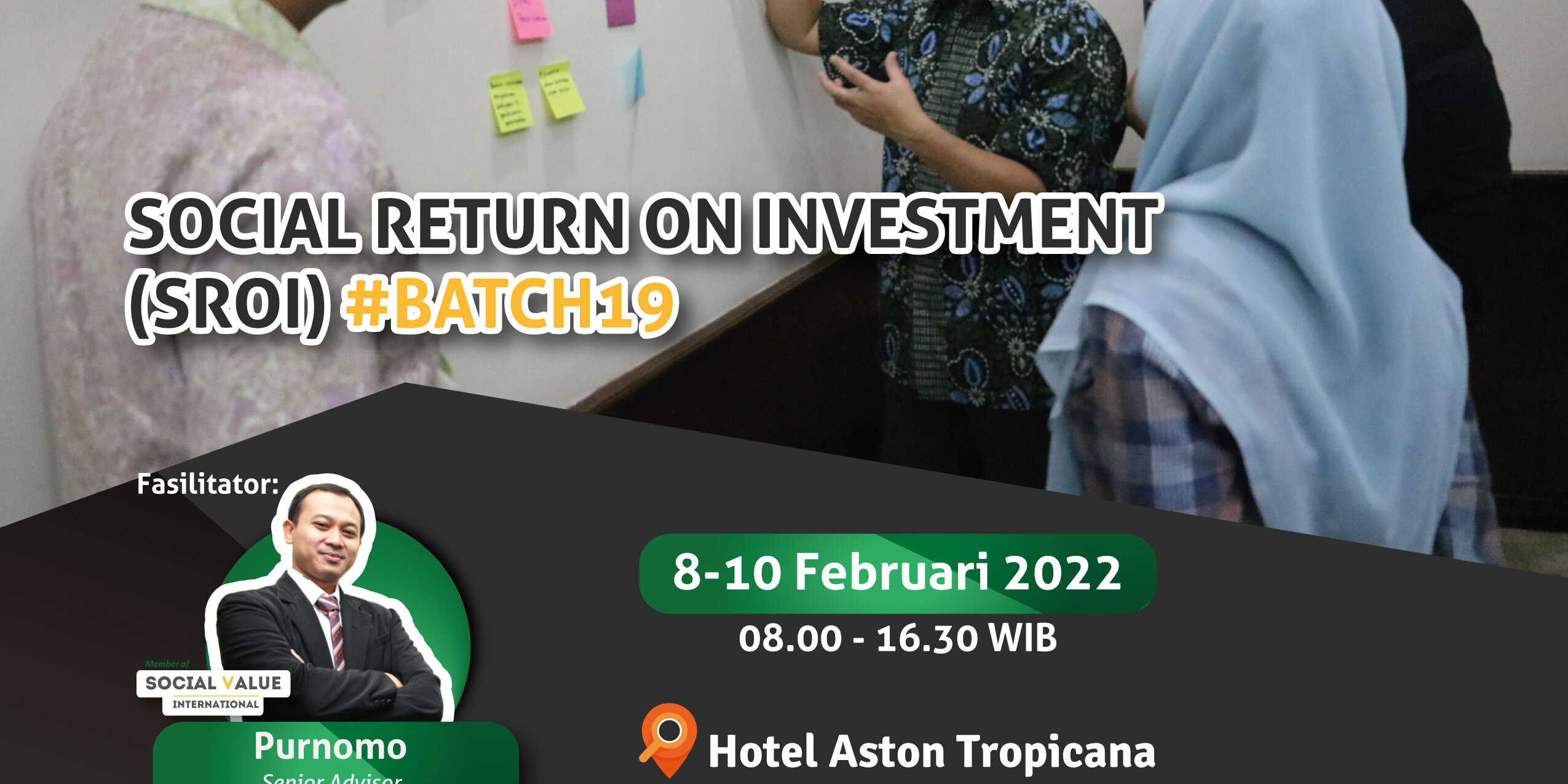 Dalam waktu dekat, Social Investment Indonesia akan melaksanakan pelatihan “Social Return on Investment (SROI) #Batch19”, bagi Bapak/Ibu yang ingin tahu lebih banyak mengenai metode pengukuran dampak program, dapat bergabung dalam pelatihan tersebut yang akan dilaksanakan pada: