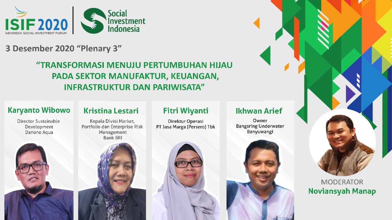 Indonesia Social Investment Forum (ISIF) 2020 yang telah diselenggarakan oleh Social Investment Indonesia (SII) dan pada tahun 2020 ini menjadi forum untuk kelima kalinya, dan untuk pertama kalinya dilakukan secara daring (full online), sebagai respon atas pandemi Covid-19. ISIF 2020 dengan tema “Transforming Business Toward Stakeholder Value for Well-being, Resilience & Sustainability”, telah menghadirkan lebih dari tiga puluh (30) pembicara tingkat nasional, baik dari pengambil kebijakan, pelaku bisnis, akademisi, aktivis dan pelaku di lapangan, dan lebih dari 700 responden yang mendaftarkan diri untuk berpartisipasi dalam agenda tersebut.