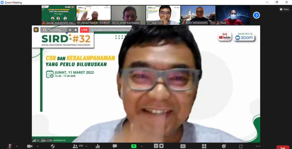 Tema yang dibahas dalam seri-32 ini tentang “CSR dan Kesalahpahaman yang perlu diluruskan”.Sesi ini mendiskusikan mengenai mengapa CSR belum berjalan sebagaimana mestinya, apa saja kesalahpahaman yang masih kerap terjadi seputar CSR dan bagaimana upaya meluruskan pemahaman konsep dan penerapan CSR agar memadai.