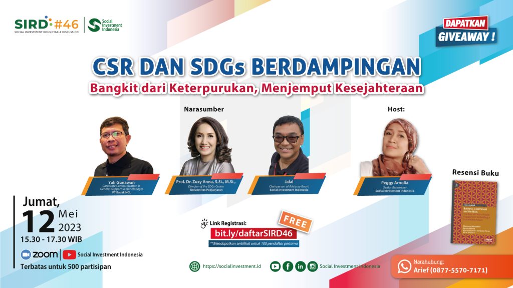 Tema yang dibahas dalam seri-46 ini tentang “CSR dan SDGs Berdampingan, Bangkit dari Keterpurukan, Menjemput Kesejahteraan”. Sesi ini mendiskusikan mengenai. Peran Akademisi dan Perusahaan dalam mengejar ketertinggalan pencapaian SDGs di sisa tujuh tahun ini, serta keterkaitan CSR dan SDGs yang sepatutnya berjalan seiring dan menguatkan di Indonesia.